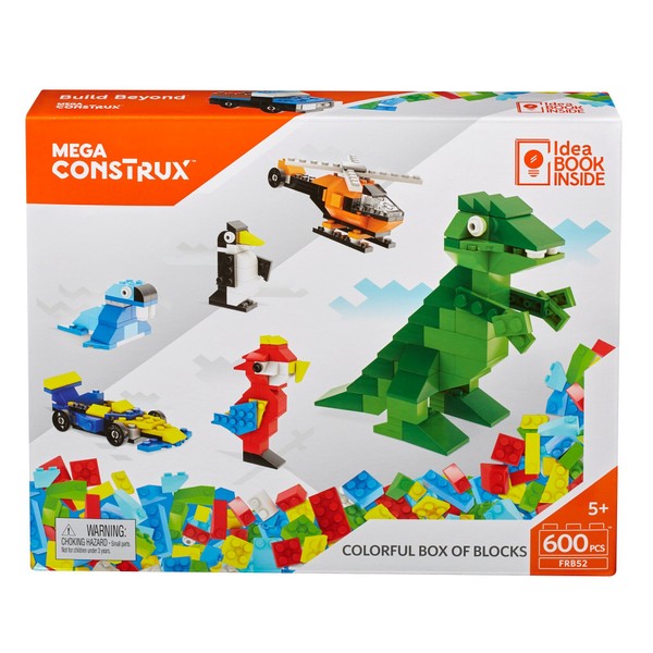 Mattel Mega Construx Colorful Box of Blocks 600Piece Brick Building Set