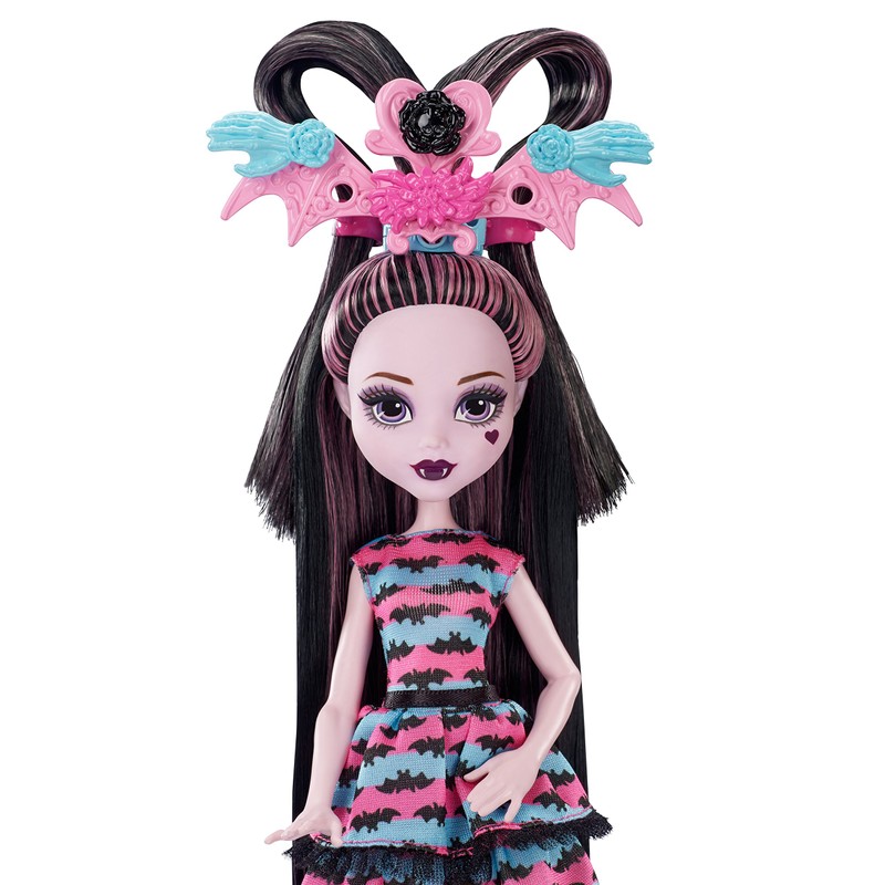 - Draculaura doll is ready for hair-raising fun with ultra-long hair streaked with her signature pink and black, plus 30 hair accessories!