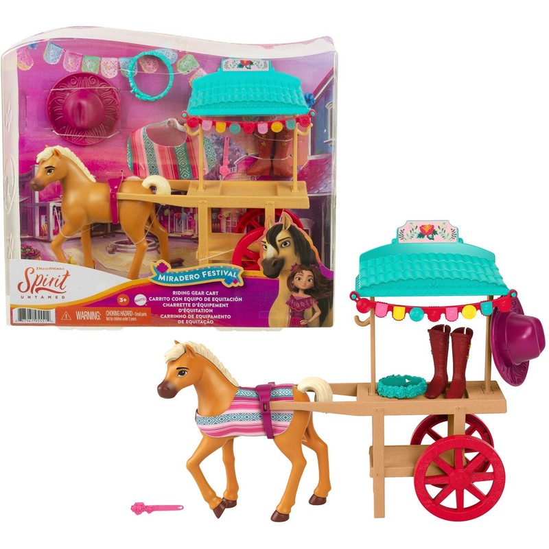 Mattel Spirit Untamed Miradero Carrito de Montar con Ruedas rodantes, Dosel, Pony de 5 Pulgadas y Accesorios Relacionados, Gran Regalo para Edades de 3 años en adelante