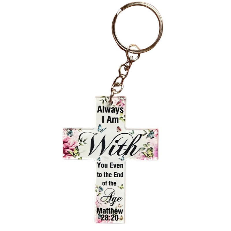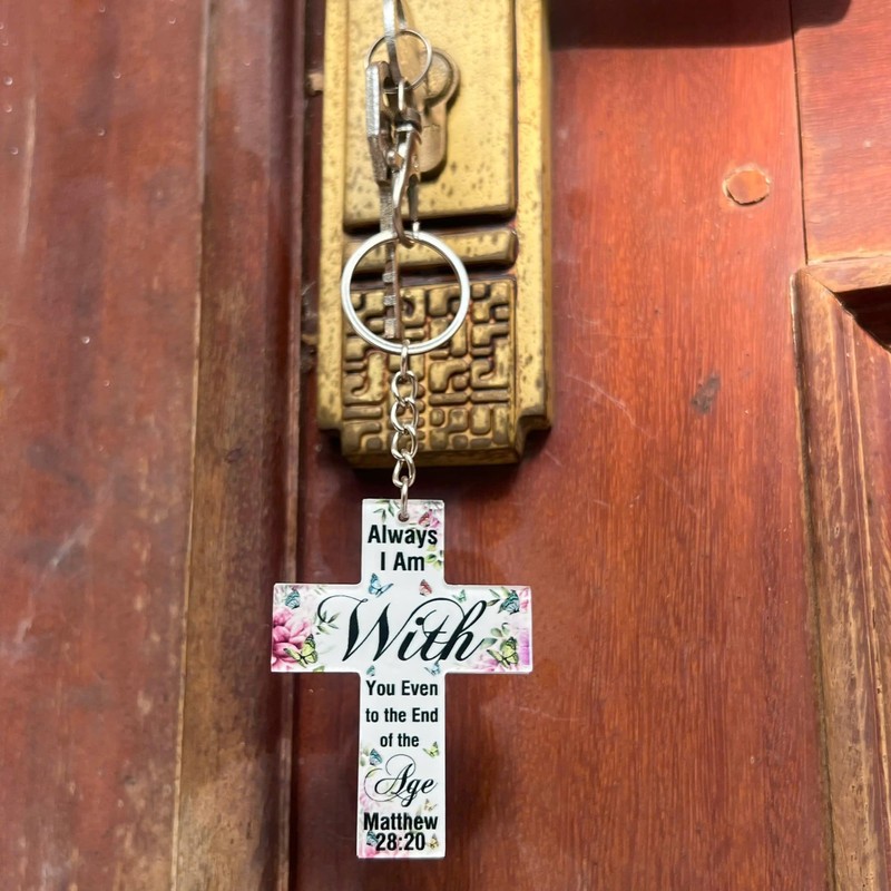 Matthew 28 20 Always I Am With You Even to the End of the Age Christian Acrylic Keychain Gifts Bible Verse Cross Keychain for All Ages Faith Inspirational Size 2.5 Inches x 2 Inches