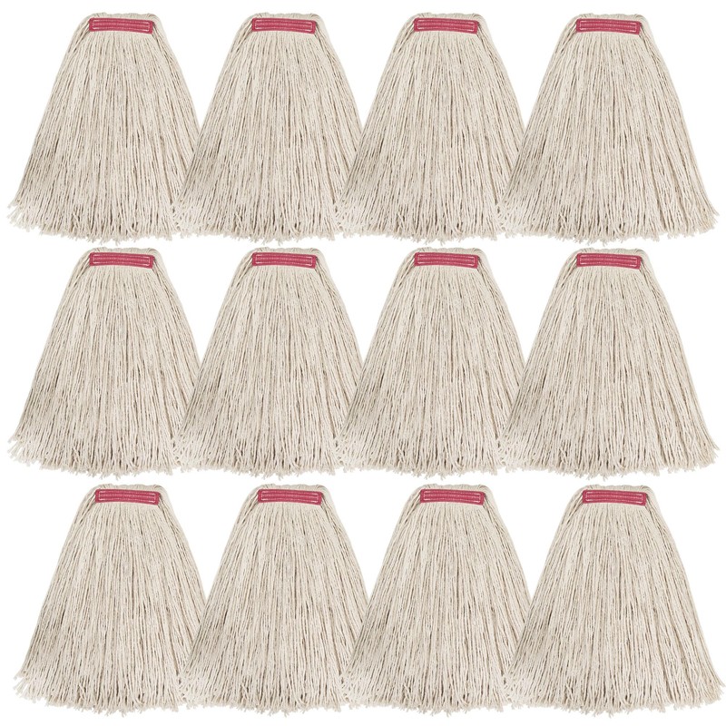 MATTHEW CLEANING 24oz 12Pack Cotton Floor Mop,Cotton Looped-Open String Heavy Duty String Mop Refills, Universal Headband Blend Mop,Mop Head Replacement for Home, Industrial and Commercial Use(White)