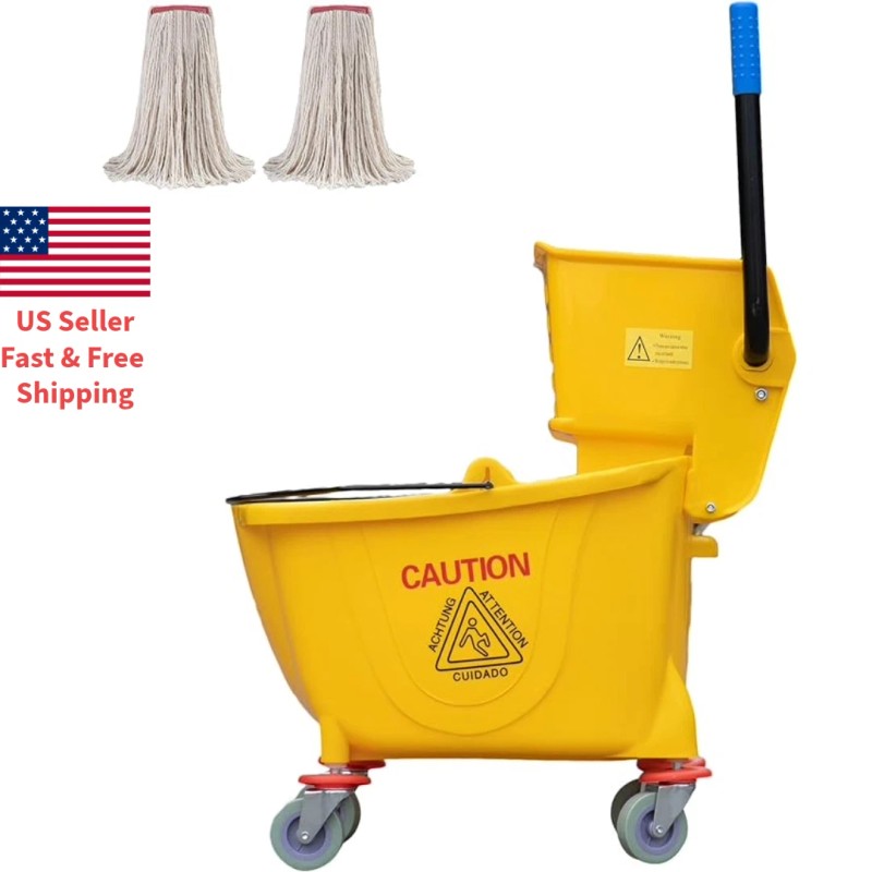 MATTHEW CLEANING PRODUCTS Mop Bucket with 2 Pack Mop Head Side Press Wringer 34 Quart