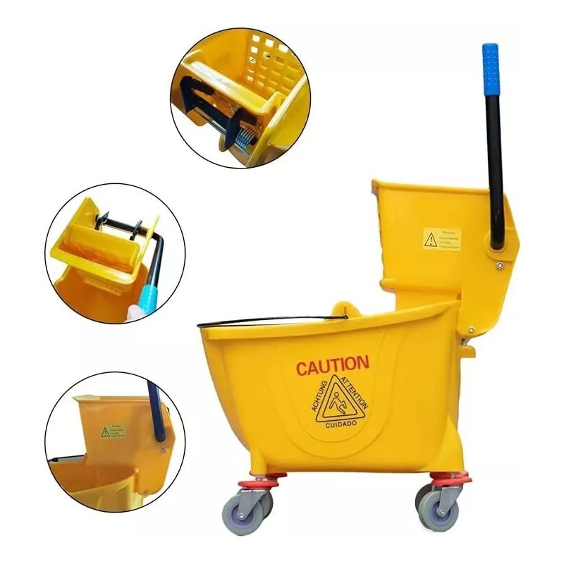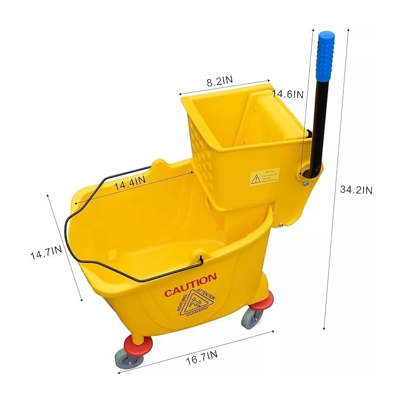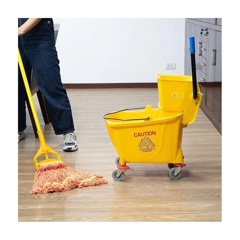 Clean wringing carts provide you with a quality experience! The material we use is both high quality and environmentally friendly. The handle is longer, so you can save more labor. Our mop bucket can save water due to its large capacity and stable structure. The clever design of the bucket and handle allows you to pour water easily. This is a mop bucket that does not require warning signs. It is a good companion for housing and commercial purposes.