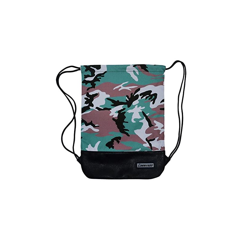 Army gym bag, backpack, made of heavy polyester fabric with reinforced faux leather at the bottom. With lockable practical inner compartment and key lock carabiner. Lockable and portable with drawstring and carry cord. Size: approx. 45 x 33 cm, camouflage camo