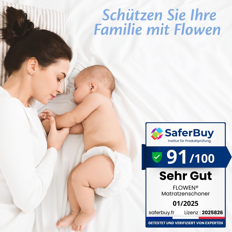 - Full protection: the ultimate protection for your mattress. The Flowen waterproof mattress cover guarantees a barrier against sweat and liquids and thus preserves the freshness of the mattress. The breathable fabric allows continuous air flow and thus avoids the accumulation of moisture. Enjoy peaceful nights in the peace of mind that your bed will stay dry and protected, ensuring maximum comfort and a long life of the mattress.