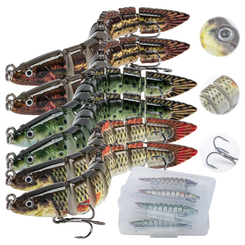 - Life-Like Movement. Featuring 9 segmented joints, these bass fishing lures create an S-shaped swimming action, mimicking real fish and attracting more strikes from predator fish