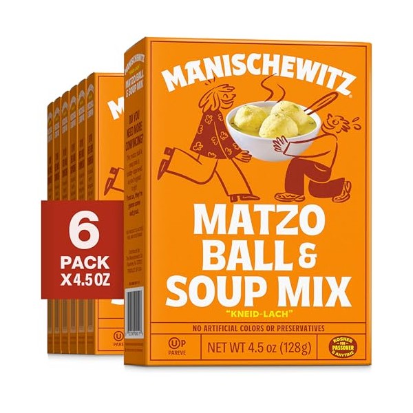 Manischewitz Matzo Ball and Soup Mix, 4.5oz (6 Pack) | Easy Prep | Kosher for Passover | Nothing Artificial | No MSG | Classic Fluffy Texture