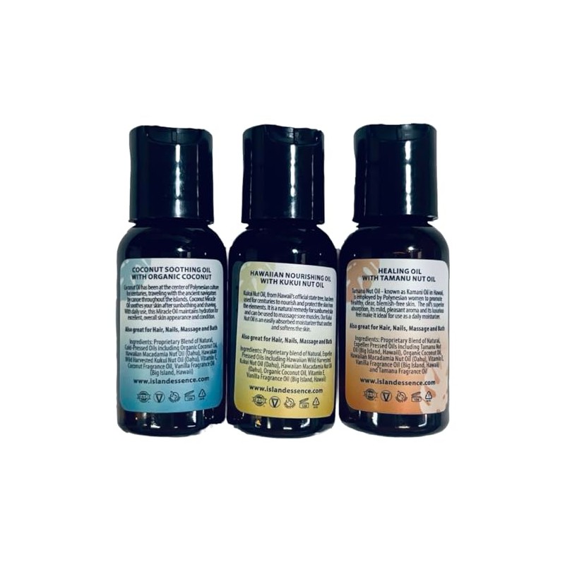 Island Essence Maui Miracle Oil Hawaii (3-Pack, 1 Ounce Each, Coconut, Tamanu & Kukui)