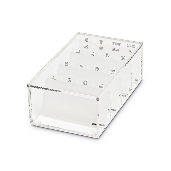 - Easy organisation: The included A-Z index ensures quick identification of contacts. The acrylic lid protects against dirt and gives the office an attractive aesthetic - the ideal desk organiser.