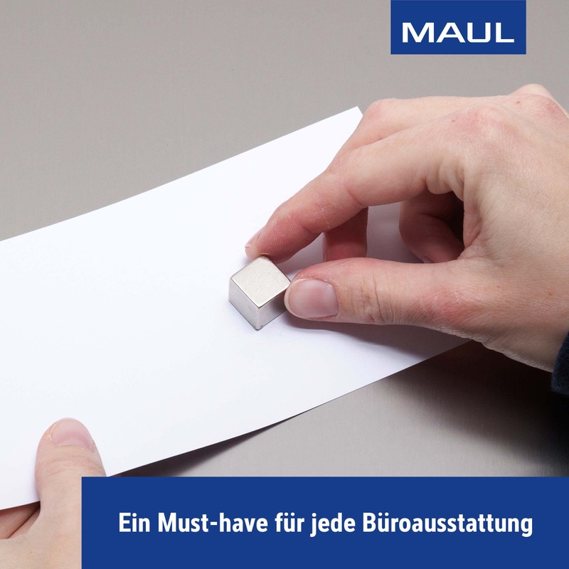 - Vielseitig einsetzbar – Der starke MAUL Neodym-Würfelmagnet wirkt edel auf Boards oder Magnetstreifen – ideal auch für die MAUL Ferroleiste und das MAUL Ferroband geeignet