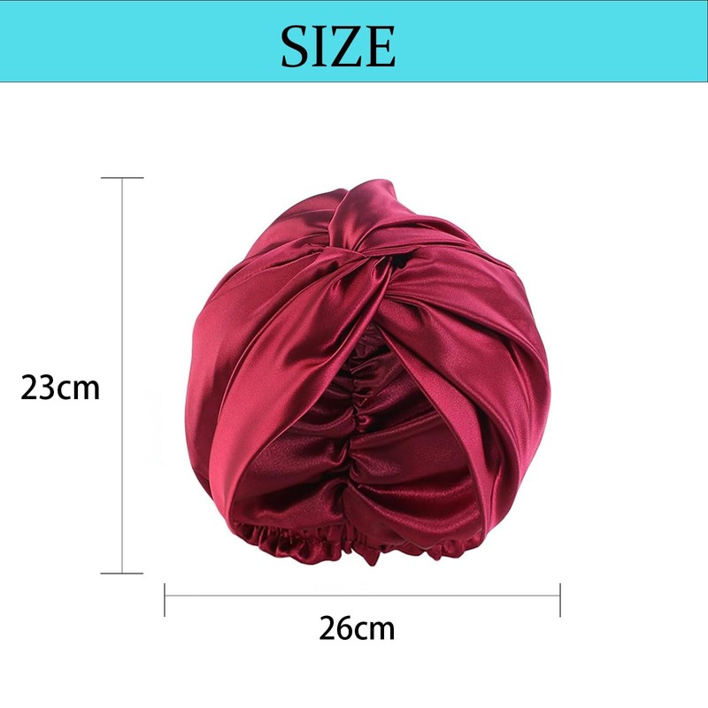 - Doppelschichtiges Design: Unsere Nachtschlafmütze besteht aus innovativem doppelschichtigem Kunstseide Stoff, der nicht nur dafür sorgt, dass Ihr Haar perfekt umhüllt ist, sondern auch unnötige Flecken auf den Laken nach der Verwendung der Haarmaske verhindert und so krauses und unordentliches Schlafen und Haar reduziert tragen