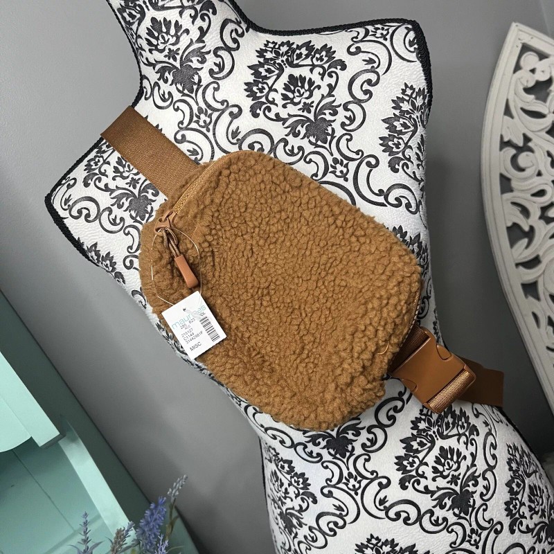 Maurices Teddy Sherpa Belt Bag NWT Camel Crossbody Bag Gym Workout