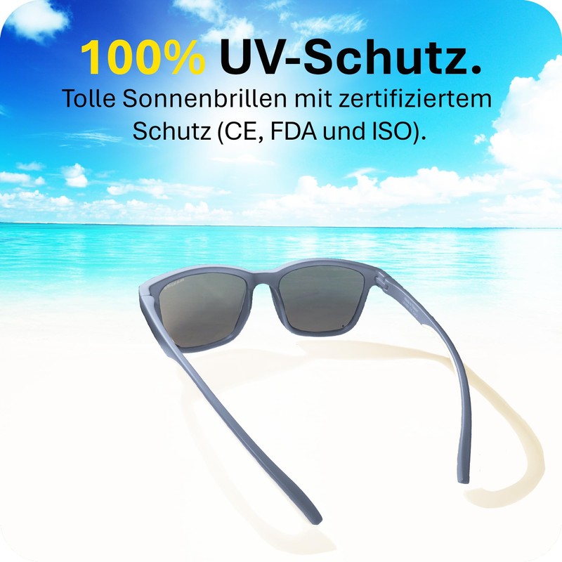 - KIDS FRIENDLY 1h: Our lightweight and comfortable children's sunglasses accompany children everywhere. Whether the children play in the water (waterproof) or in the sun, our children's sunglasses are the best partner. In addition, our frame is 100% BPA and free from harmful substances