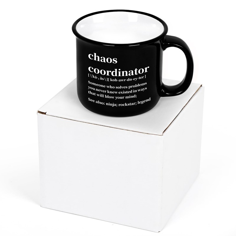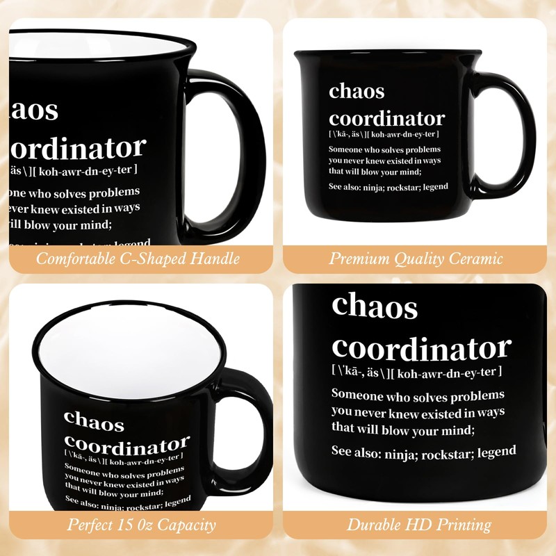 - IDEAL GIFT: Embrace the organized disarray with the chic and playful 'Chaos Coordinator' mug. Perfectly capturing the spirit of those who tackle the unpredictable with style and a wink, this mug makes an ideal gift for men or women adept at juggling multiple tasks—be it coworkers, bosses, office managers, teachers, moms, or any professional who keeps the chaos in check.