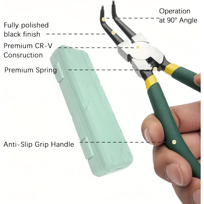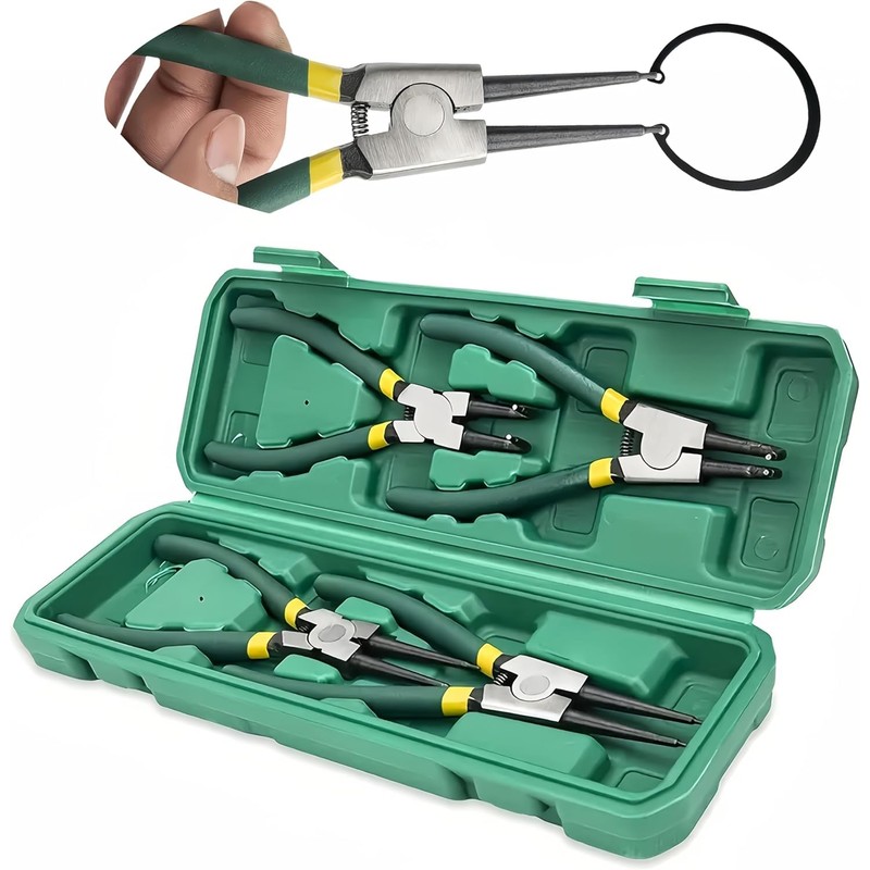 - VERSATILE 4 IN 1 SET - Includes straight and curved inside/outer needle nose pliers for all types of circlips. Perfect for mechanics, DIY enthusiasts and industrial supplies.