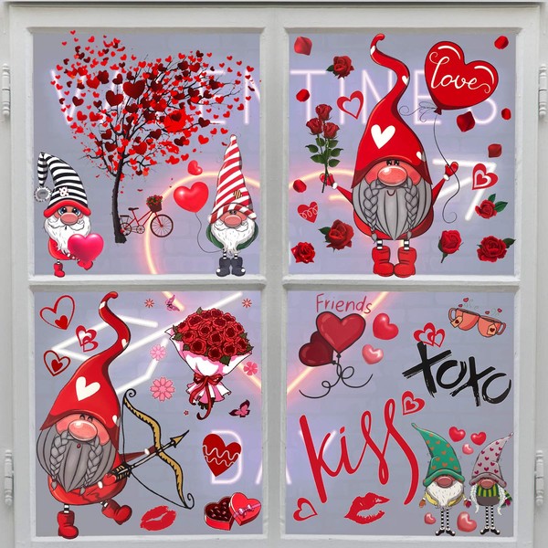 - 【Valentines Day theme】These Valentines Decorations decals are full of Valentine's Day related patterns, including different cute Valentine's Day lovers, gnomes, hearts, red lips, bouquets of flowers, cakes and different heart-shaped designs.