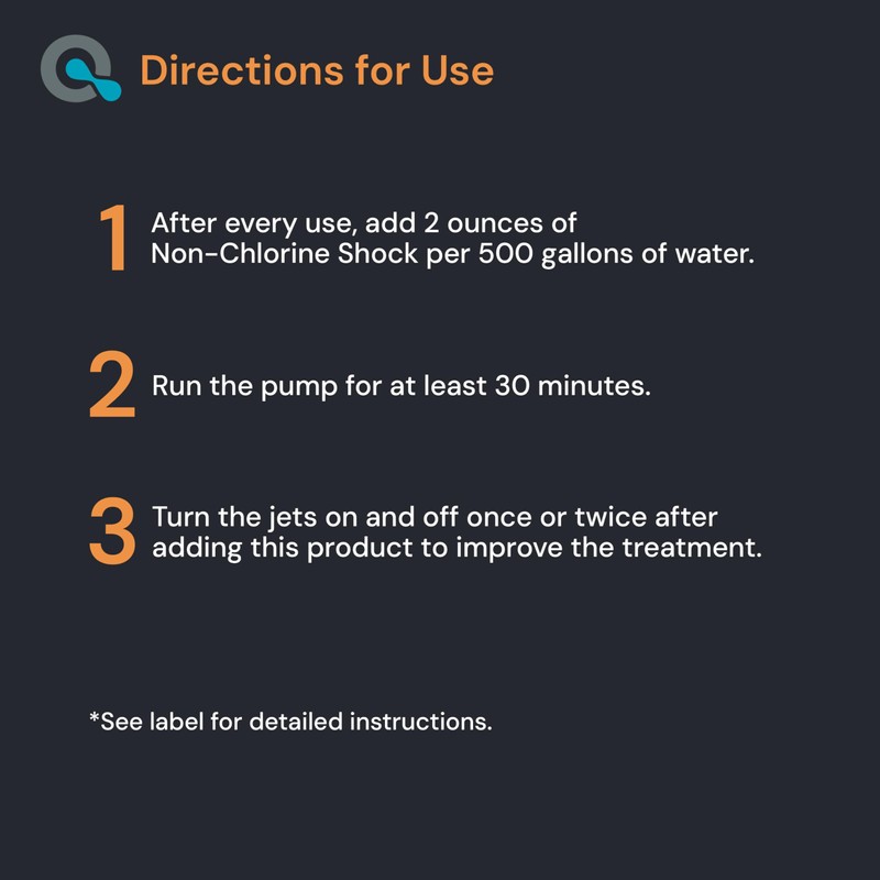 - Quick Dissolving Hot Tub Shock - Say goodbye to gross stuff in your hot tub. Enhanced non-chlorine shock gives your Chlorine and Bromine a boost, making your sanitizer last longer. Use our Non-Chlorine shock to make your sanitizer more efficient & reduce sanitizer smell.
