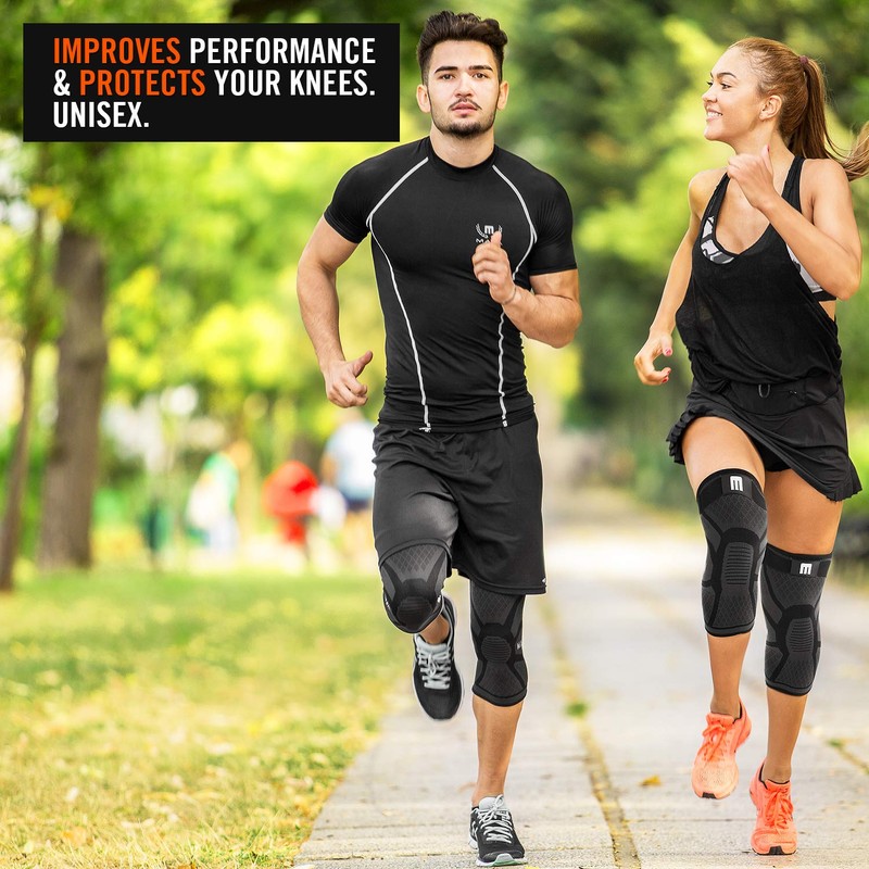 - EASY TO PUT ON - The material is nice and comfortable. It can be worn under clothes without affecting circulation. Shaped to prevent injuries, improve circulation and speed up your recovery. Great for healing and rehab. Not binding or bunching up behind the knee. Perfect knee brace for walking, running, treadmill, long distance walks, standing all day, jogging, dancing. Also great for sports activities, cross training, weight lifting, gym, cycling, hiking, basketball, workouts & climbing.