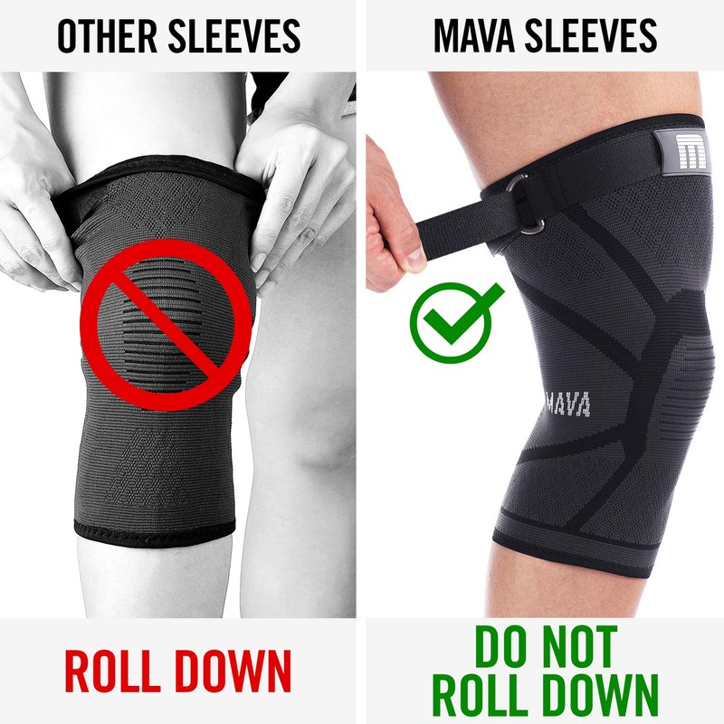 - “NO ROLL DOWN” Knee Sleeve - PAIR - Effective and designed for arthritis pain, sports activities and many others. Our knee support will help you reduce pain, swelling and inflammation. No itching, No slipping, Full mobility & Comfort. Enjoy your life and everyday activities again. The most common and annoying problem is now SOLVED! Our knee compression sleeve DOES NOT ROLL DOWN.