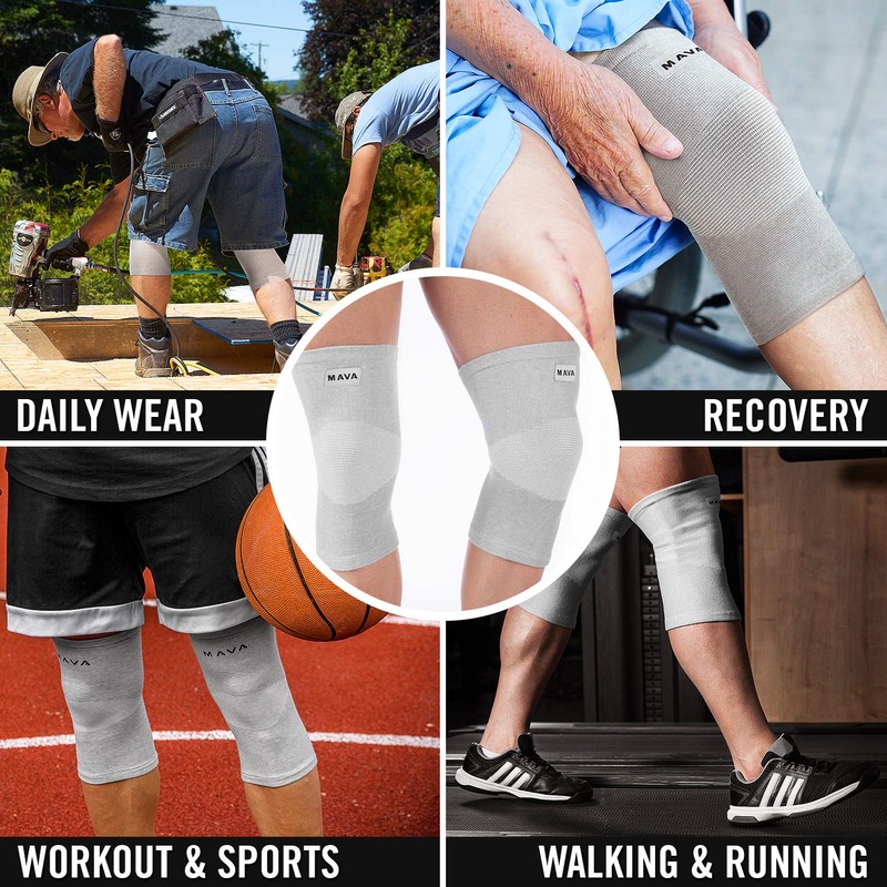 Mava Sports Reflexology Knee Compression Sleeve for Men and Women - Effective Support for Joint Pain, Arthritis Relief, Recovery and Blood Circulation - Great for Running and Walking (Grey,Small)