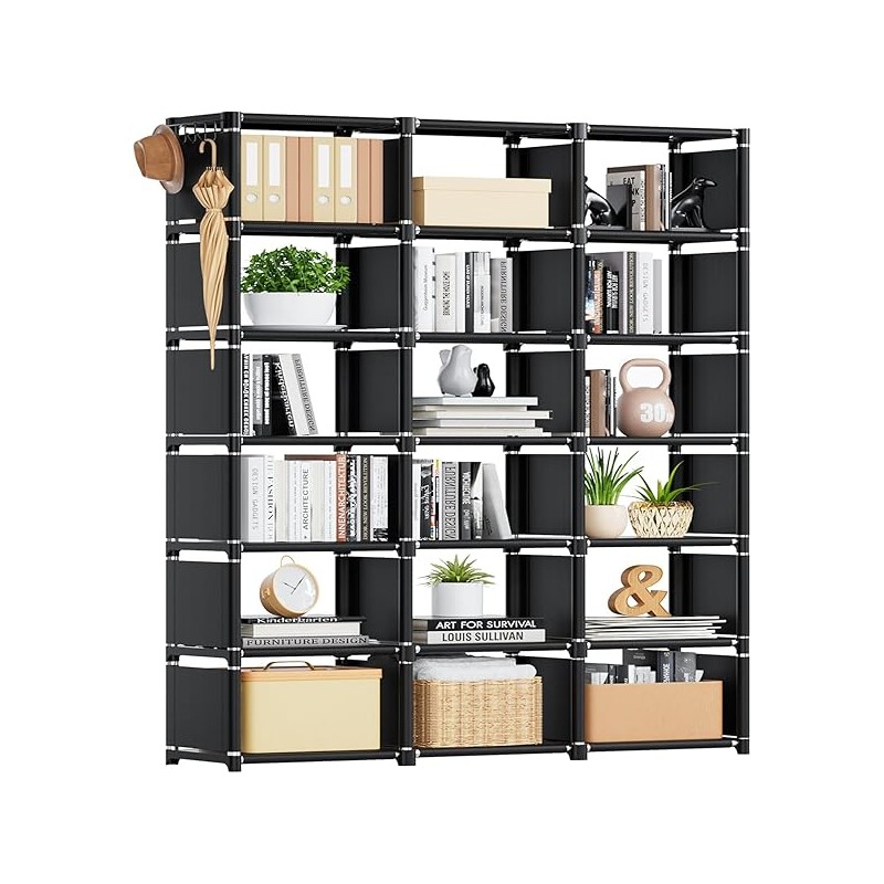 Mavivegue Bookcase, 18-Cube Extra Large Book Shelf, DIY Cube Storage Organizer for Bedroom, Living Room, Home Office - Black