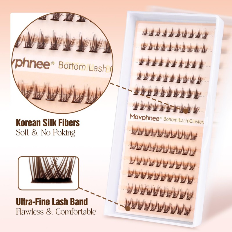 - Reusable & Durable Lower Eyelash Clusters for Lasting ValueMaximize your investment with highly reusable brown bottom eyelashes. Made from premium Korean silk, these durable lower lash clusters maintain their perfect shape, fluffy texture, and rich brown color through multiple wears (up to 10-15+ uses with proper gentle care). Simply remove eyelashes adhesive after each use. Enjoy long-lasting performance, outstanding value, and consistent quality for reusable lower lash extensions at home.
