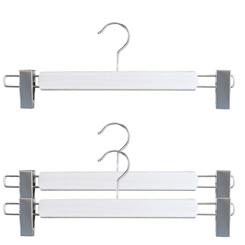 Mawa by Reston Lloyd, European Beech Wood Pant/Skirt Hanger with Adjustable Clips, 13.75" Wide Nordic Pure Series, Set of 3, White Washed