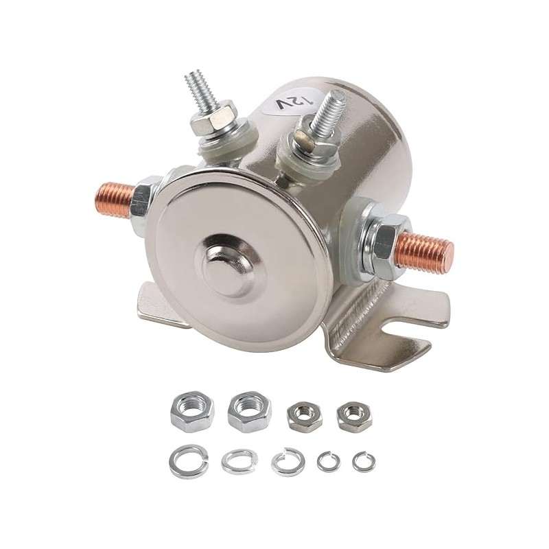 Max 300A 12 Volt Duty Solenoid Relay 4-Terminal for Golf Carts Heavy Duty Winch Marine in Rush SPST 12VDC 12V Solenoid Relay Nickel-Plating