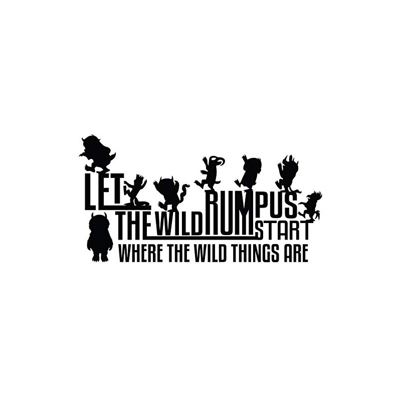 Max and Artwork Creative Design for Bedroom Wall Decoration - Let The Wild Rumpus Start with a Bunch of Characters from the Movie Where The Wild Things Are Black and White Art with Quotation for Living Room Vinyl Wall Decal - 20" x 12"