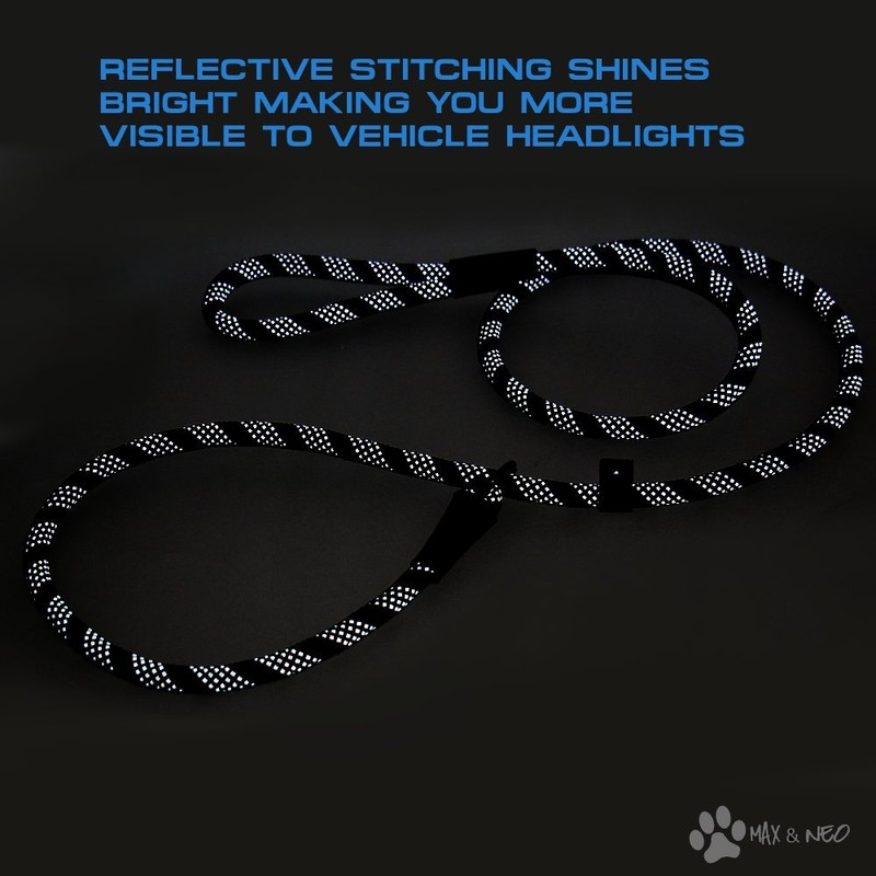 - QUALITY CONSTRUCTION: Our rope slip leads are made with high quality 1/2" nylon reflective rope. They are designed to handle the largest dog breeds. They are made to endure the constant use that dog rescues put them through. We consulted with many dog rescues to find out what they wanted in a perfect dog leash. And they answered: Tough, Heavy Duty, Durable, Comfortable and Affordable.