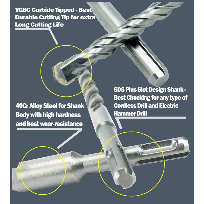 ✅Chucking Shank:SDS Plus shank allow best chucking in cordless drill and electric rotary hammer.