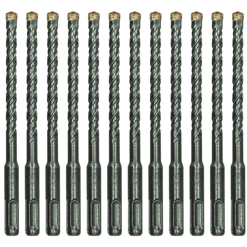 MAX-CRAFT 5/16"x8" SDS Plus Rotary Hammer Drill Bit Carbide Tip for Masonry Concrete-12Pcs