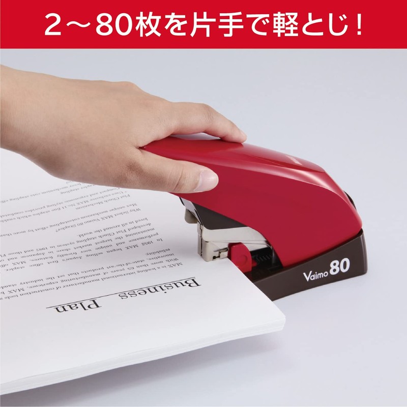MAX HD-11UFL/R MAX Stapler, Tabletop Stapler, Bimo, 80 Flats, 80 Sheets, Red