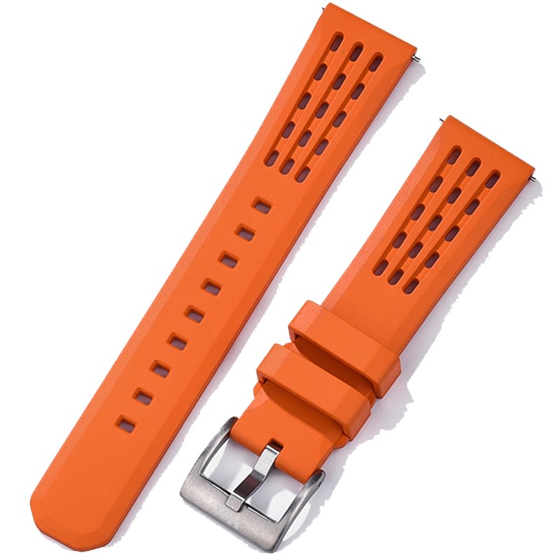 Fluororubber (FKM) is perfect for dive watches, smartwatches or adventure sports because of its strength and flexibility. Always keeps its shape and doesn’t lose colour.