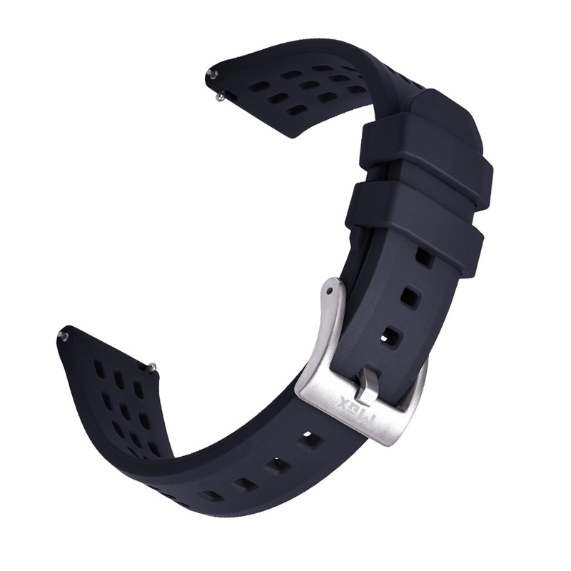 Our Max Skycom Watch Bands feature integrated quick release spring bars and a brushed 316L stainless steel buckle. Made from high quality FKM rubber for style and strength, these straps are durable, yet breathable, soft and comfortable. Compatible with any watch (traditional or smart watch) that uses standard 20mm or 22mm spring bars.