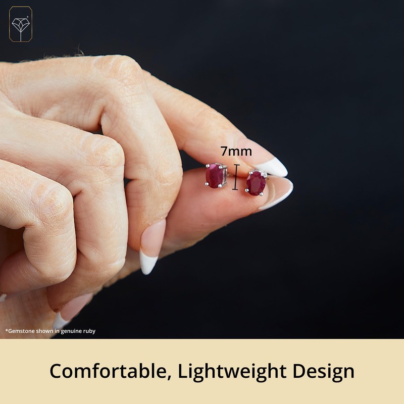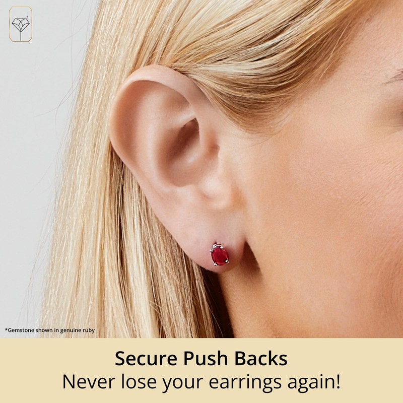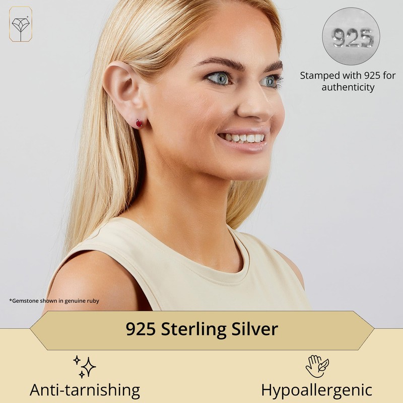 MAX + STONE 925 Sterling Silver Red Ruby Oval Stud Earrings for Women 5mm July Birthstone with Push Backs