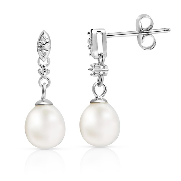 - REAL DIAMONDS - These silver pearl dangle earrings for women feature natural diamonds in a pave setting to elevate your look. These beautiful diamonds, on these silver drop earrings, go through the Kimberley process & are ethically sourced!