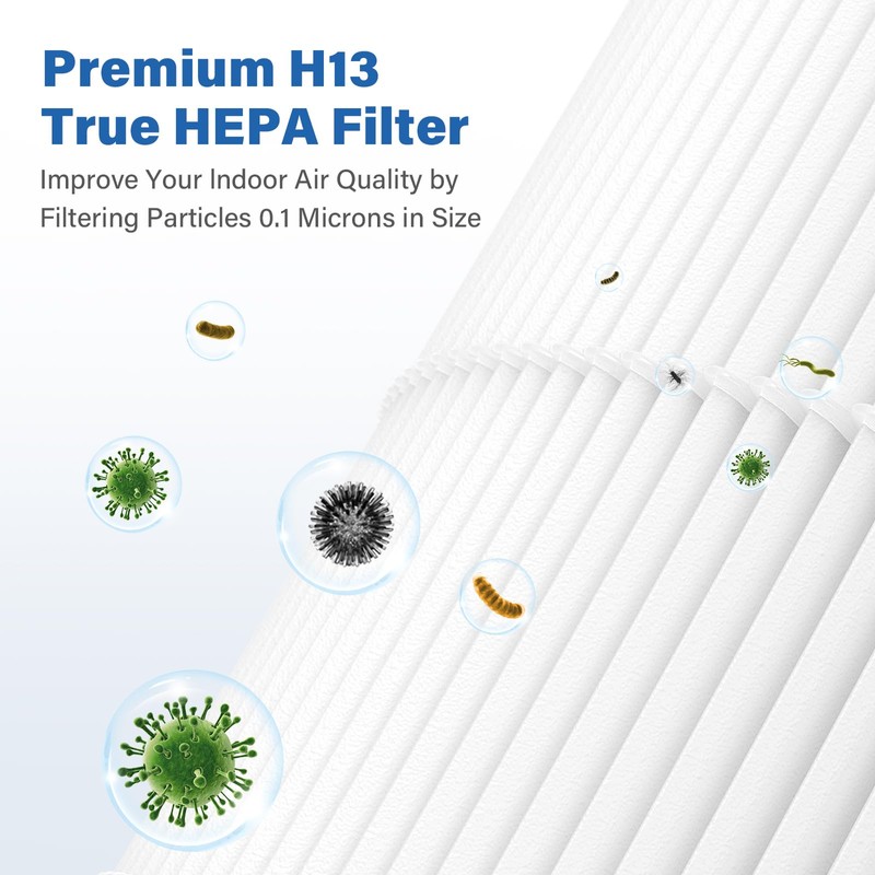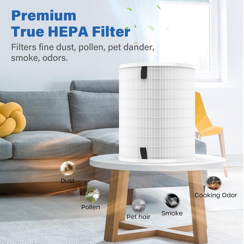 - 【3-Stage Filtering System】This advanced filter boasts a 3-stage filtration system that filters airborne particles as small as 0.1 microns, ensuring your indoor air is clean and fresh. The high-efficiency MAX filter combines a pre-filter, H13 True HEPA filter and activated carbon filter to filter particles and Absorb odors, creating fresh and purified air in your home or office throughout the day.