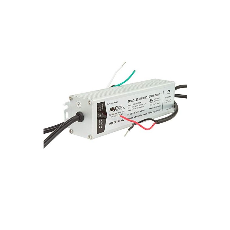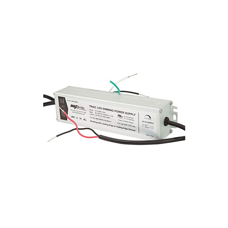 MaxBrite 60W LED POWER SUPPLY, 12V DC Output, 100-277V AC Input, IP67 Waterproof, UL/cUL Certified, CE, RoHS, Class 2