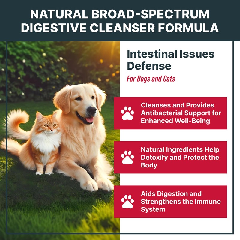 - ? Gentle Cleansing Formula: Crafted with natural herbal ingredients, this blend helps maintain a clean and balanced system in pets, supporting their digestive wellness and overall vitality.