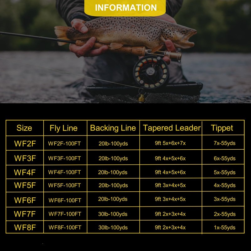 • COMPLETE KIT: This fly line combo includes WF floating line with two welded loops,backing line, 3 pcs tapered leader, and tippet for a full fishing setup
