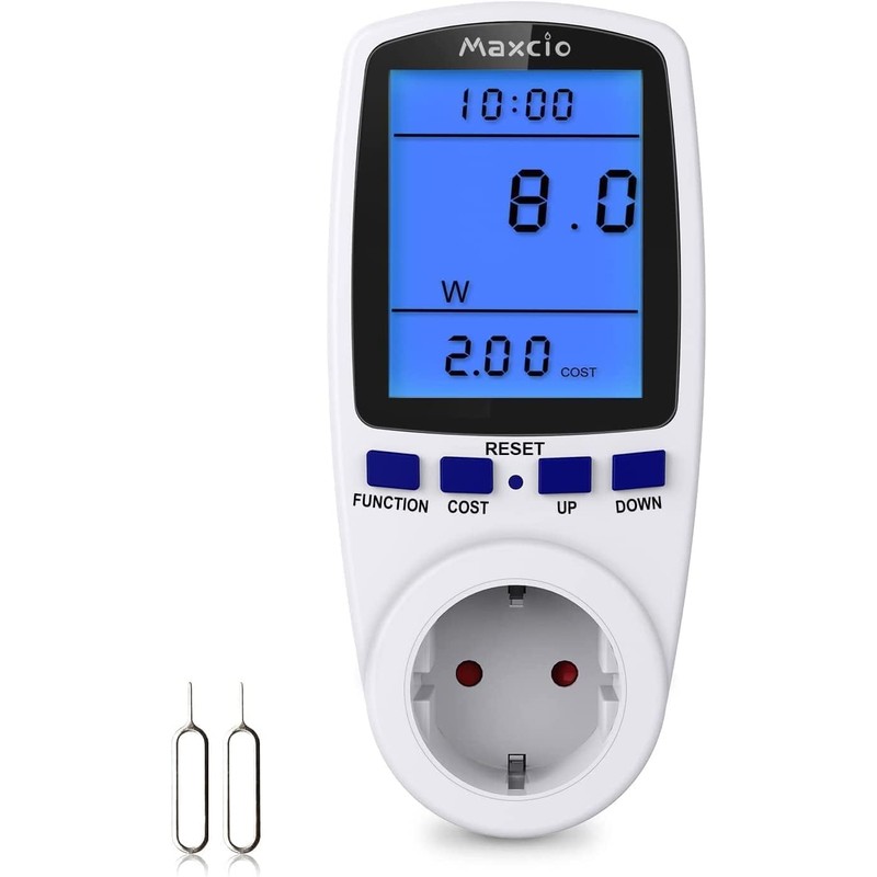 Maxcio Power Meter, Power Socket, Energy Cost Meter, Power Consumption Meter, Electricity Meter with Large LCD Screen