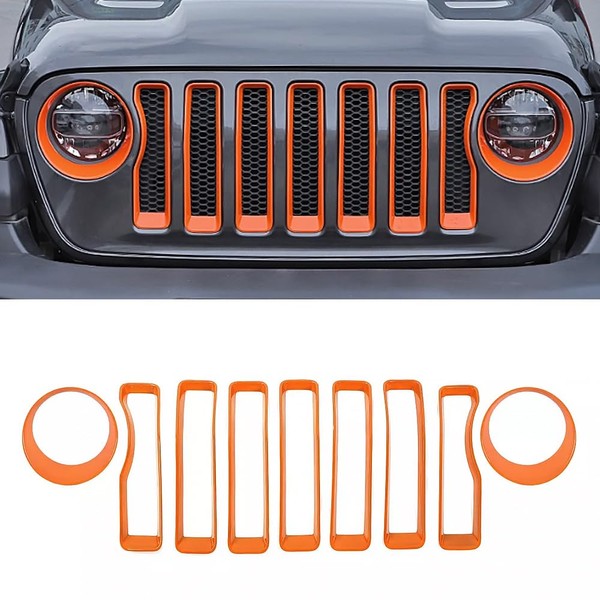 MAXDOM Grille Inserts Headlight Covers Set Fits for Jeep (2018-2023) (Orange, Gladiator JT)