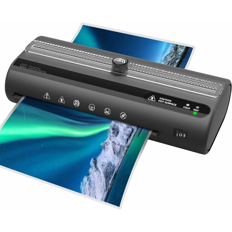 - Fast warm-up laminator: Enjoy a well-organized no noise laminating process with a rapid 1-2 minutes warm-up time and 320 mm/min laminating speed! Thermal laminate & cold laminating in one.