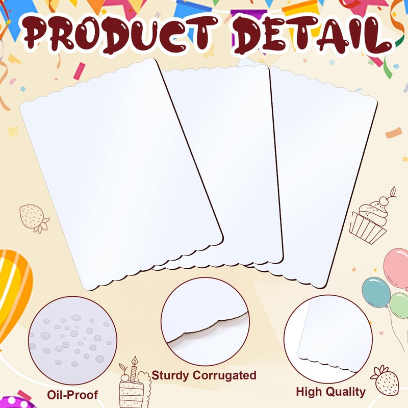 Maxdot Maxdot 20 Pcs 26 x 18 Inch Rectangle Cake Boards Disposable Single Wall Cake Pad Scalloped Full Sheet Dessert Base White Corrugated Pastry Food Tray Plate for Pizza Display Holiday Party Supplies