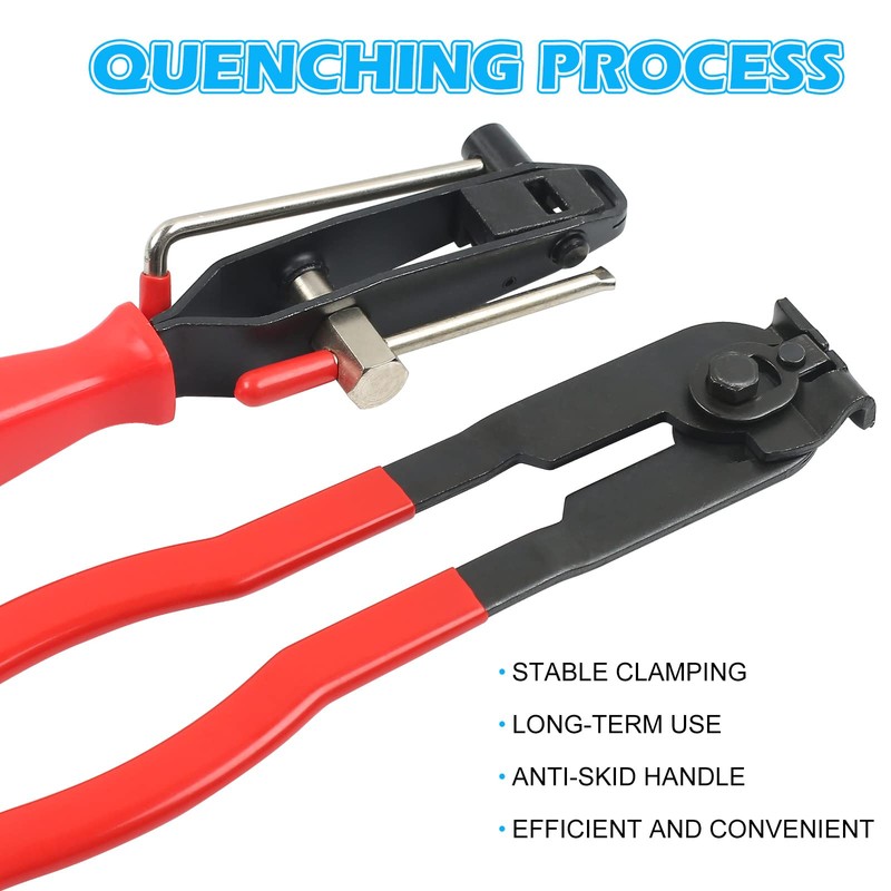 - đăHigh QualityăThe heads of both clamps pliers are made of forged carbon steel for strength and durability. The whole is made of high-quality stainless steel, which is corrosion-resistant and has a long service life. The insulated handle is ergonomically designed for practical comfort. The CV Boot Clamp is made of 304 stainless steel for stability.