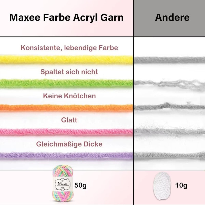 - Great quality, safe and comfortable: The high-quality gradient wool from Maxee is made of acrylic. It is very soft yet heavy duty with a fine pearlescent shine. Excellent for cosy crochet and knitted items and also suitable for babies, as the material is also free from harmful substances. Simply perfect for crocheting and knitting.