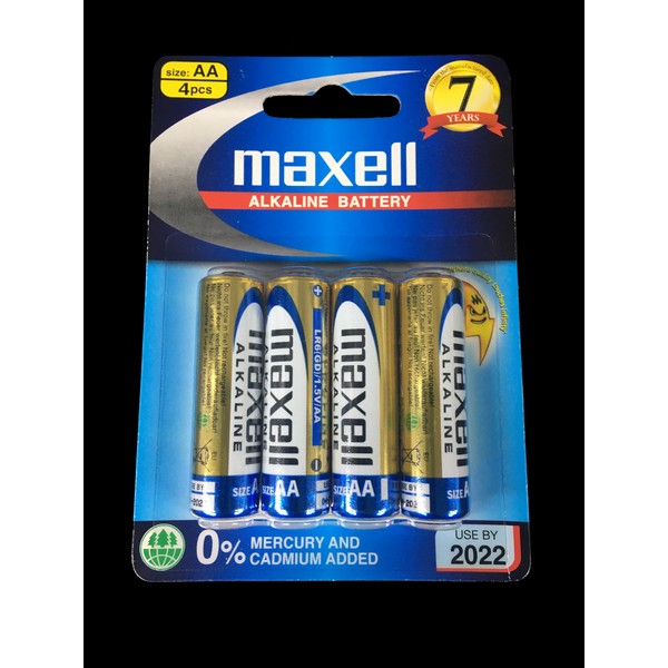 Maxell AA LR6(GD) 1.5V Alkaline Battery 0% Mercury and Cadmium (4 Batteries)
