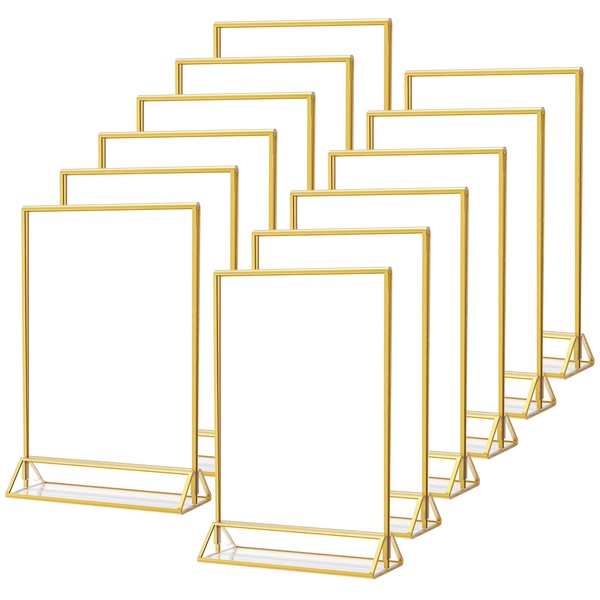 MaxGear 4x6 Gold Acrylic Sign Holder 12 Pack, Wedding Gold Table Number Holders, Double Sided Picture Frame Paper Stand Photo Display, Clear Menu Holder Flyer Stand for Wedding, Home, Restaurant