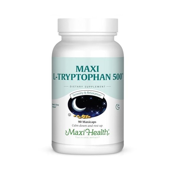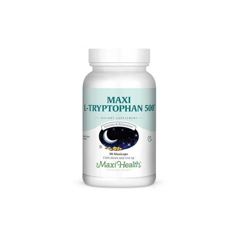 Maxi Health L-Tryptophan 500mg - Mood & Sleep Formula - 90 Capsules - Kosher